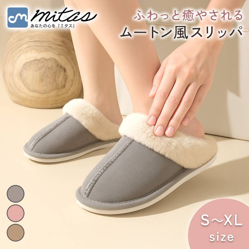 ムートン風スリッパ もこもこ かわいい おしゃれ スリッパ ナチュラル 来客用 レディース メンズ シンプル ルームシューズ 内履き 冬 あったか クッション1,320(税込)